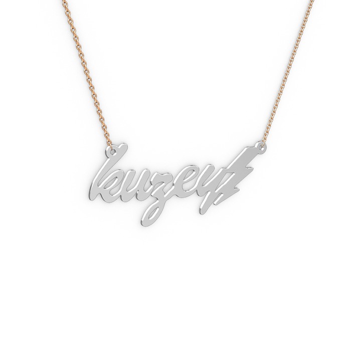 18 ayar beyaz altın kolye (5 karakterli el yazısı, 40 cm rose altın rolo zincir)