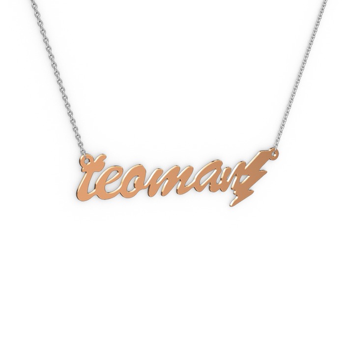 18 ayar rose altın kolye (6 karakterli el yazısı, 40 cm beyaz altın rolo zincir)