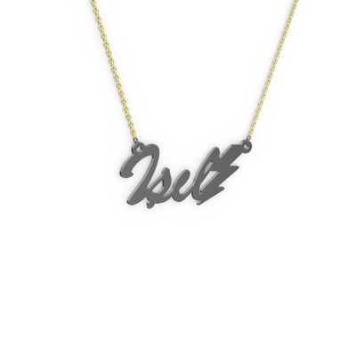 925 ayar siyah rodyum kaplama gümüş kolye (4 karakterli el yazısı, 40 cm altın rolo zincir)