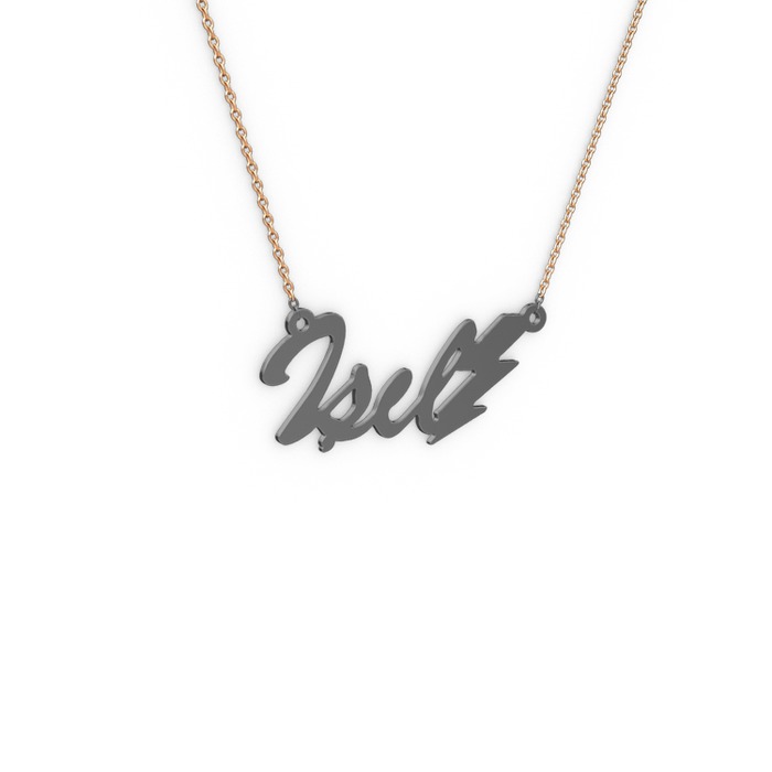 925 ayar siyah rodyum kaplama gümüş kolye (4 karakterli el yazısı, 40 cm rose altın rolo zincir)