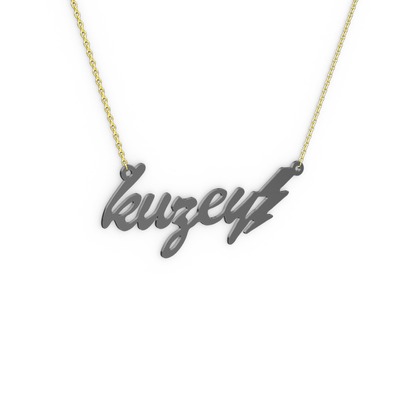 925 ayar siyah rodyum kaplama gümüş kolye (5 karakterli el yazısı, 40 cm altın rolo zincir)