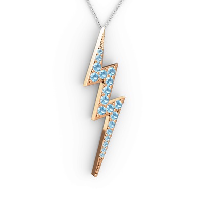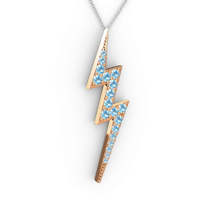 Akuamarin 18 ayar rose altın kolye (40 cm beyaz altın rolo zincir)