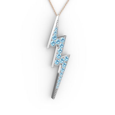 Akuamarin 8 ayar beyaz altın kolye (40 cm rose altın rolo zincir)