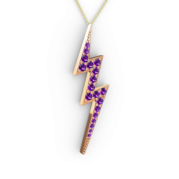 Ametist 18 ayar rose altın kolye (40 cm altın rolo zincir)