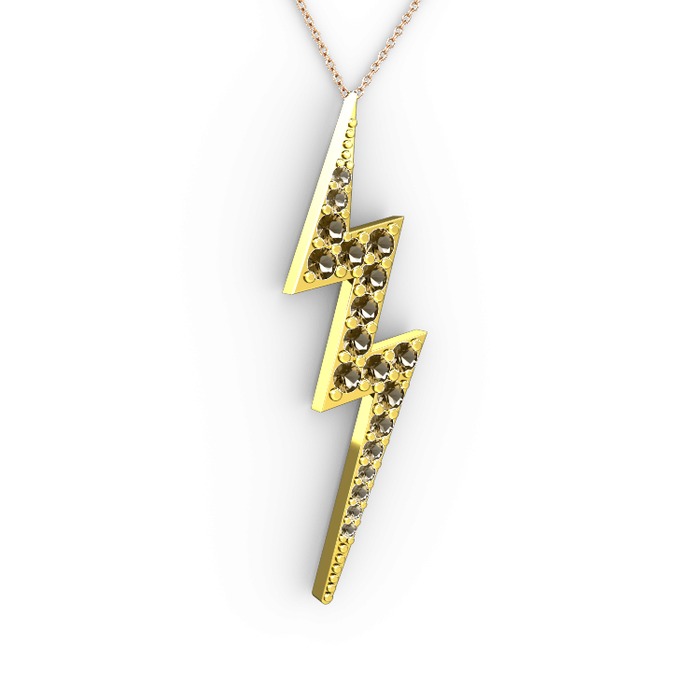 Dumanlı kuvars 18 ayar altın kolye (40 cm rose altın rolo zincir)