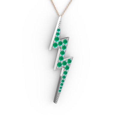 Kök zümrüt 14 ayar beyaz altın kolye (40 cm rose altın rolo zincir)