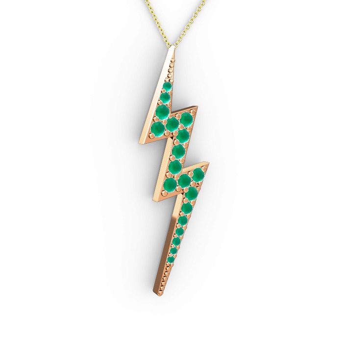 Kök zümrüt 14 ayar rose altın kolye (40 cm gümüş rolo zincir)