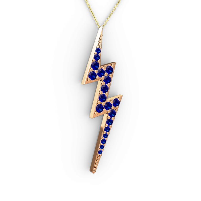 Lab safir 14 ayar rose altın kolye (40 cm gümüş rolo zincir)