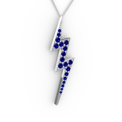 Lab safir 18 ayar beyaz altın kolye (40 cm beyaz altın rolo zincir)