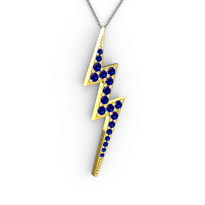 Lab safir 8 ayar altın kolye (40 cm gümüş rolo zincir)