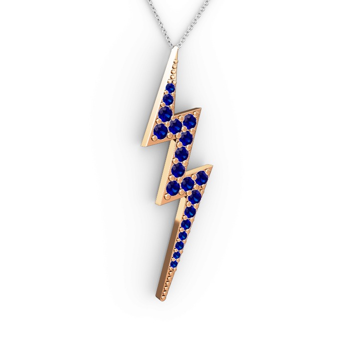 Lab safir 8 ayar rose altın kolye (40 cm beyaz altın rolo zincir)