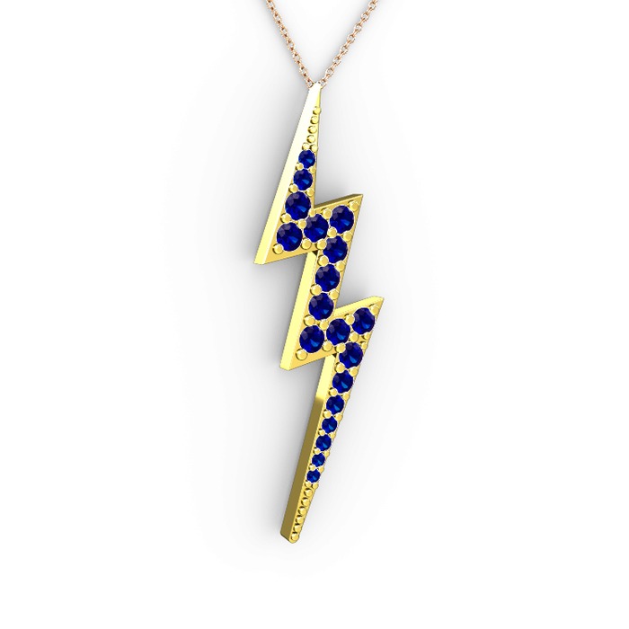Lab safir 925 ayar altın kaplama gümüş kolye (40 cm rose altın rolo zincir)