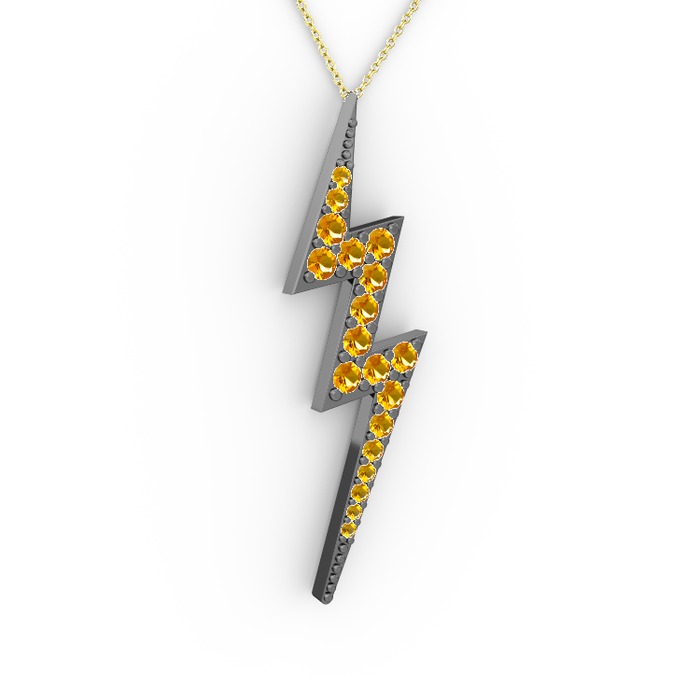 Sitrin 925 ayar siyah rodyum kaplama gümüş kolye (40 cm altın rolo zincir)
