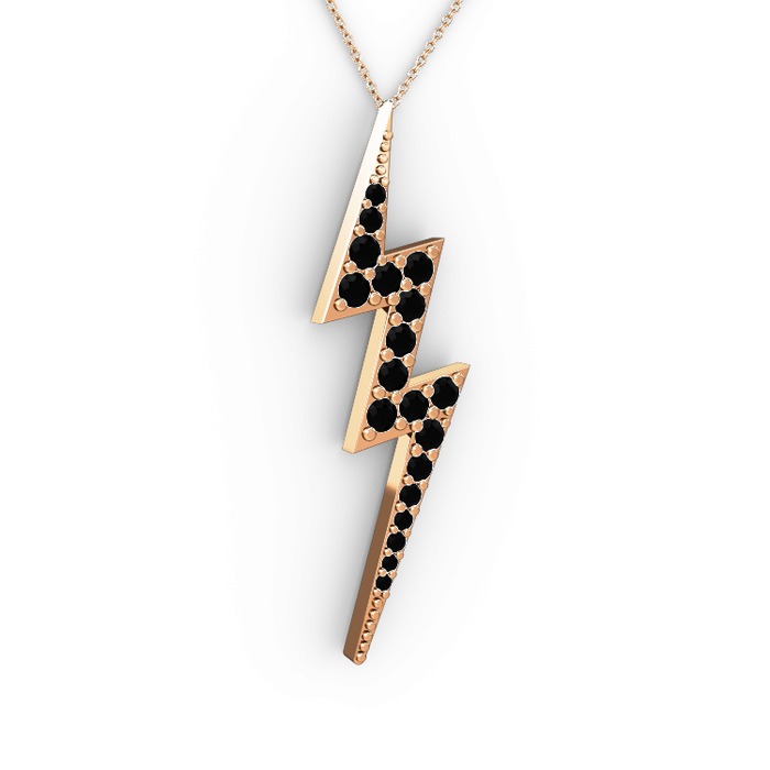 Siyah zirkon 925 ayar rose altın kaplama gümüş kolye (40 cm rose altın rolo zincir)