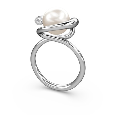 Inci ve beyaz zirkon 8 ayar beyaz altın yüzük