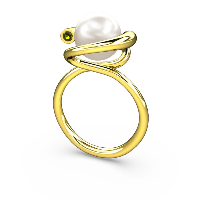 Inci ve peridot 925 ayar altın kaplama gümüş yüzük