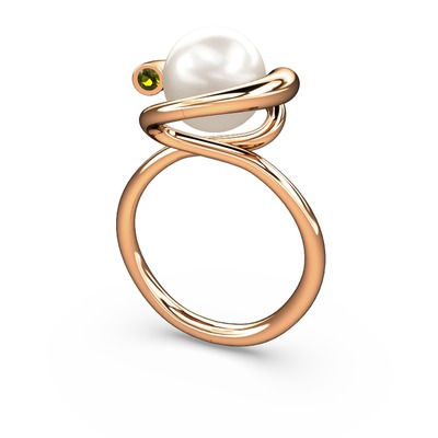 Inci ve peridot 925 ayar rose altın kaplama gümüş yüzük