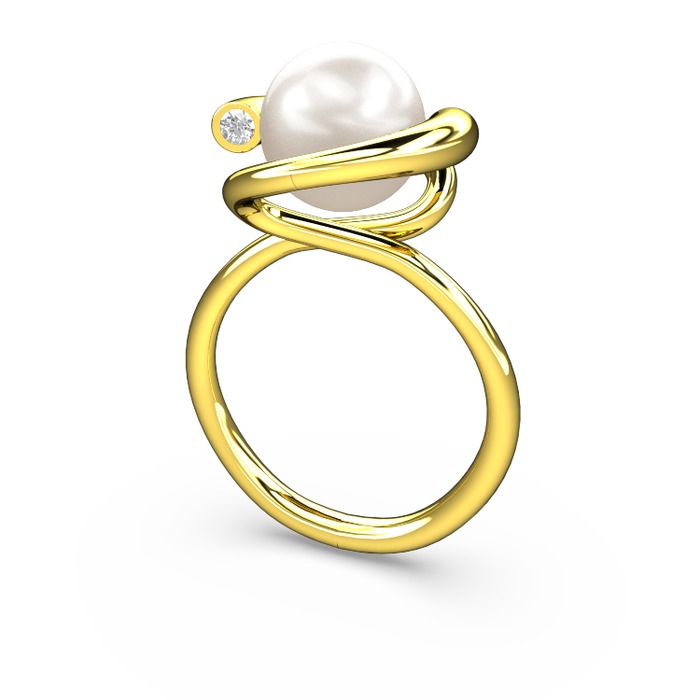 Inci ve pırlanta 925 ayar altın kaplama gümüş yüzük (0.04 karat)