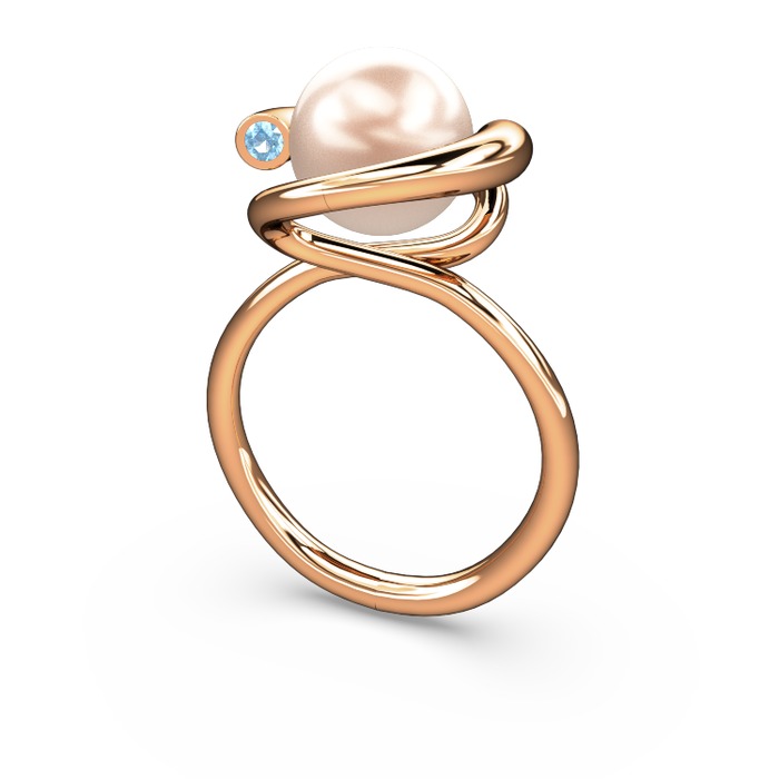 Pembe inci ve akuamarin 8 ayar rose altın yüzük