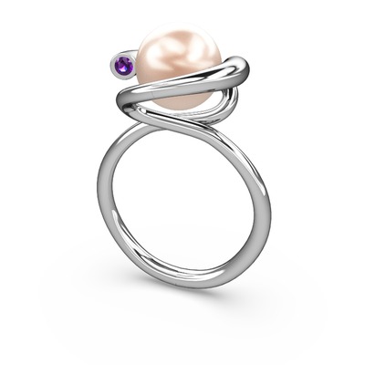 Pembe inci ve ametist 8 ayar beyaz altın yüzük