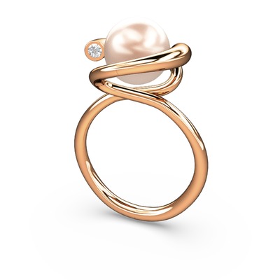Pembe inci ve beyaz zirkon 8 ayar rose altın yüzük