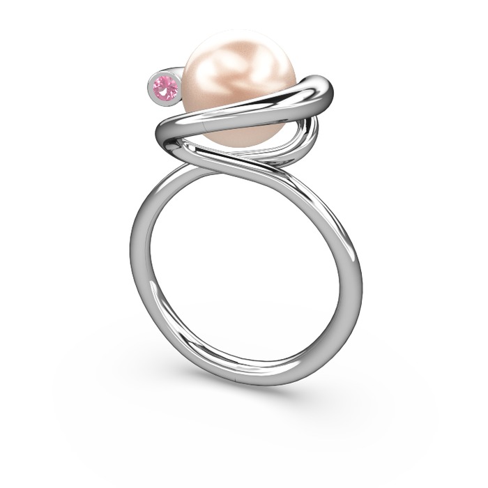 Pembe inci ve pembe kuvars 8 ayar beyaz altın yüzük