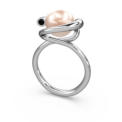Pembe inci ve siyah zirkon 8 ayar beyaz altın yüzük