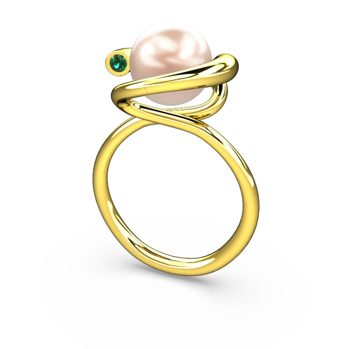 Pembe inci ve yeşil kuvars 18 ayar altın yüzük
