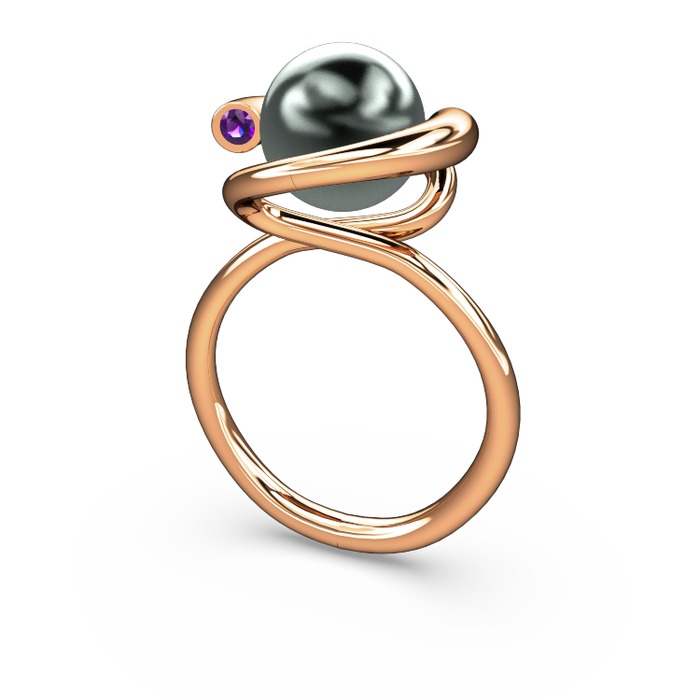 Siyah inci ve ametist 8 ayar rose altın yüzük