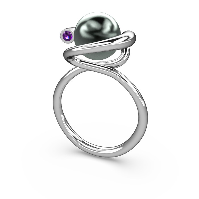 Siyah inci ve ametist 925 ayar gümüş yüzük