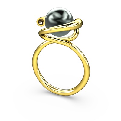 Siyah inci ve dumanlı kuvars 14 ayar altın yüzük
