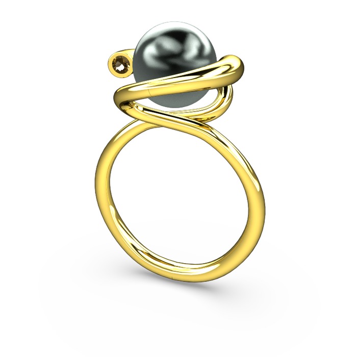 Siyah inci ve dumanlı kuvars 8 ayar altın yüzük
