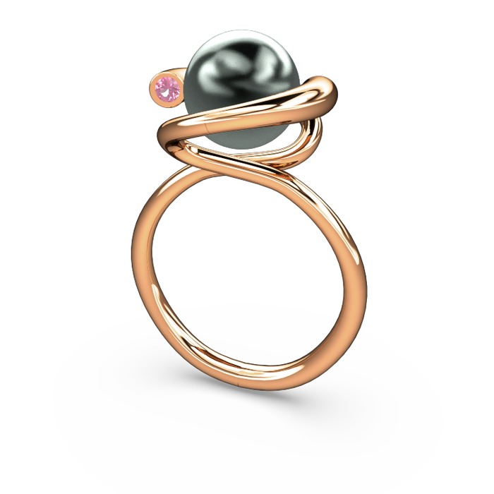 Siyah inci ve pembe kuvars 14 ayar rose altın yüzük