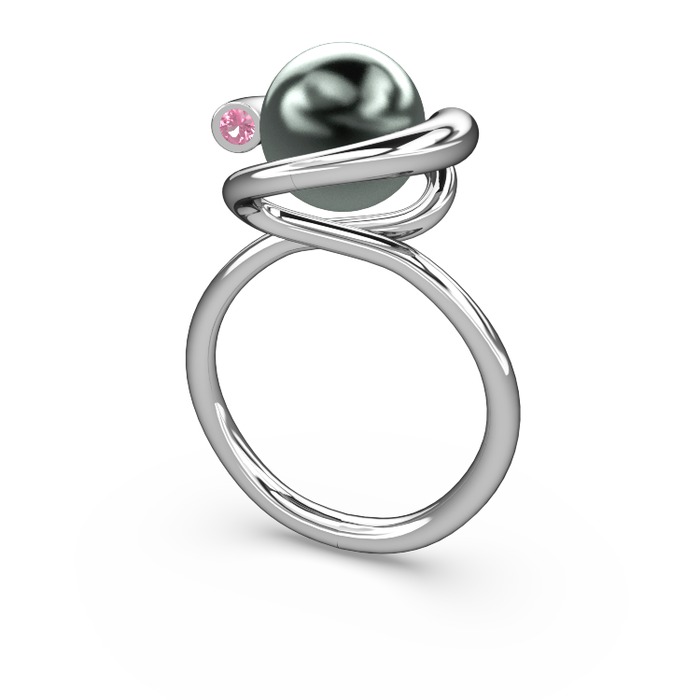 Siyah inci ve pembe kuvars 8 ayar beyaz altın yüzük