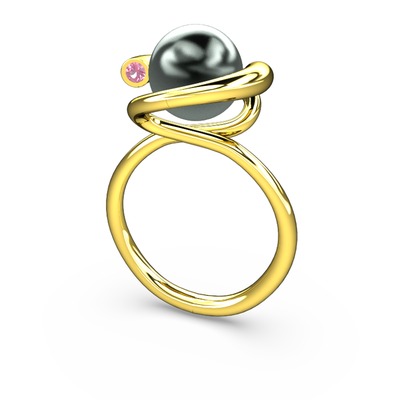Siyah inci ve pembe kuvars 925 ayar altın kaplama gümüş yüzük