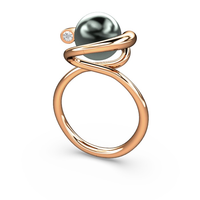 Siyah inci ve pırlanta 8 ayar rose altın yüzük (0.04 karat)