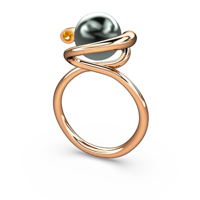 Siyah inci ve sitrin 8 ayar rose altın yüzük