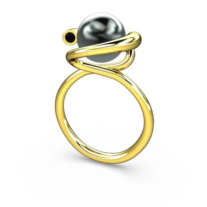 Siyah inci ve siyah zirkon 8 ayar altın yüzük