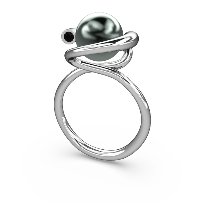 Siyah inci ve siyah zirkon 8 ayar beyaz altın yüzük