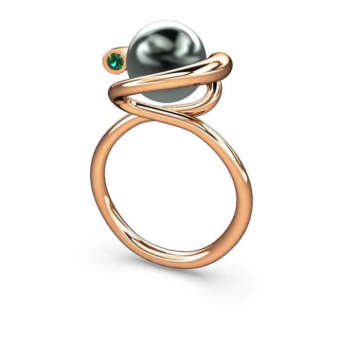 Siyah inci ve yeşil kuvars 14 ayar rose altın yüzük