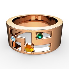 Kök yakut, akuamarin ve sitrin 925 ayar rose altın kaplama gümüş yüzük