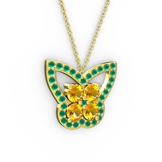 Sitrin ve kök zümrüt 14 ayar altın kolye (40 cm altın rolo zincir)