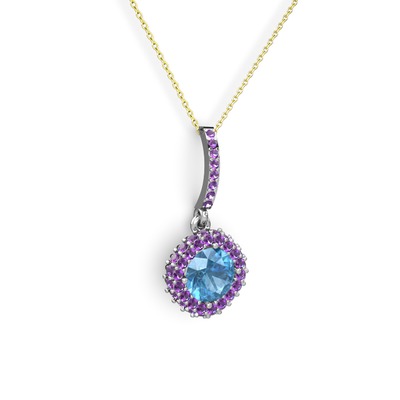 Akuamarin ve ametist 14 ayar beyaz altın kolye (40 cm altın rolo zincir)