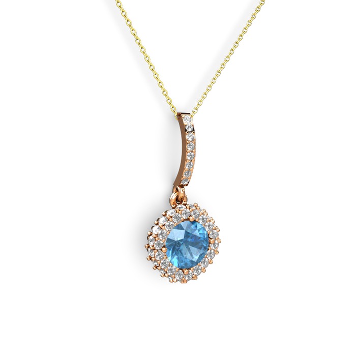 Akuamarin ve beyaz zirkon 18 ayar rose altın kolye (40 cm gümüş rolo zincir)