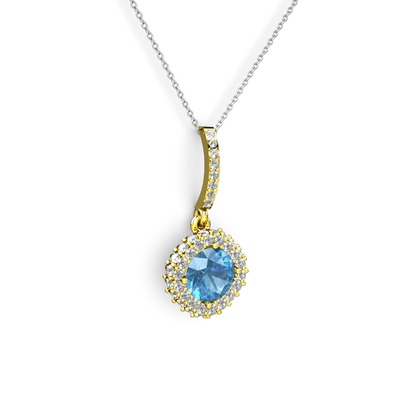 Akuamarin ve beyaz zirkon 925 ayar altın kaplama gümüş kolye (40 cm beyaz altın rolo zincir)