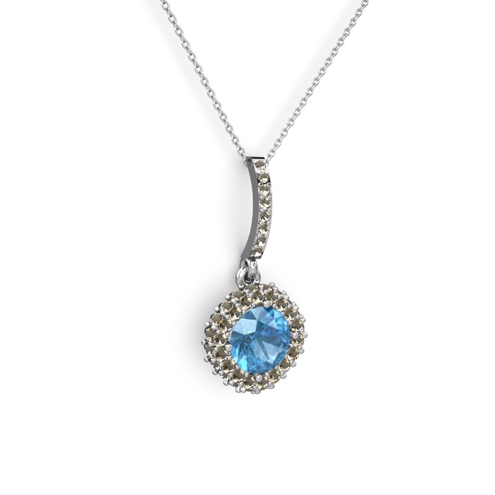 Akuamarin ve dumanlı kuvars 14 ayar beyaz altın kolye (40 cm beyaz altın rolo zincir)
