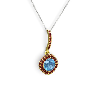 Akuamarin ve garnet 925 ayar altın kaplama gümüş kolye (40 cm beyaz altın rolo zincir)