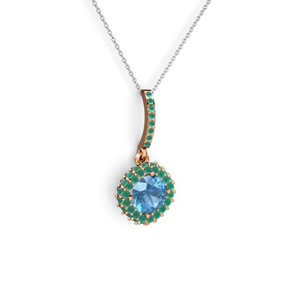 Akuamarin ve kök zümrüt 18 ayar rose altın kolye (40 cm beyaz altın rolo zincir)