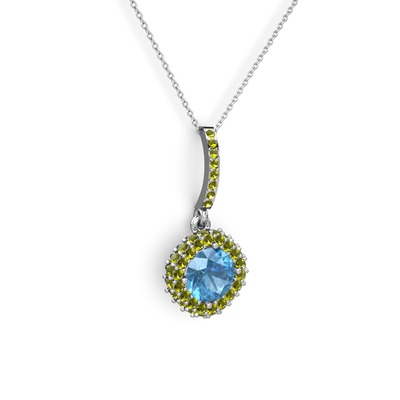 Akuamarin ve peridot 18 ayar beyaz altın kolye (40 cm beyaz altın rolo zincir)