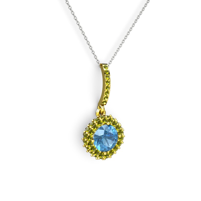 Akuamarin ve peridot 8 ayar altın kolye (40 cm gümüş rolo zincir)